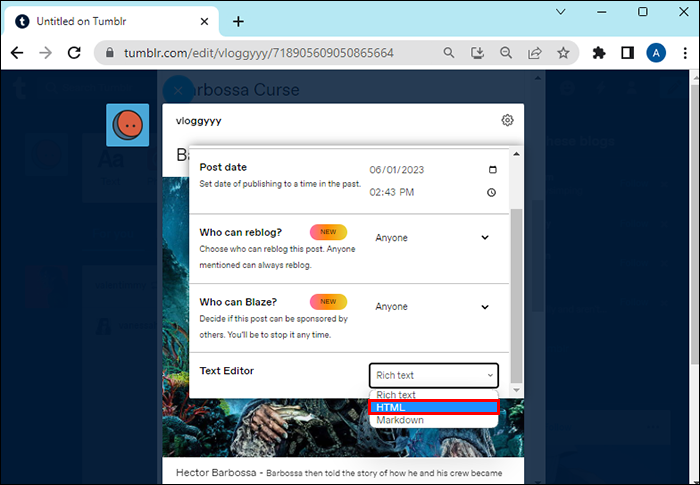 - Begin or edit a new blog.