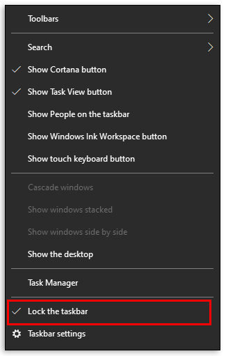 This step is optional and will help to prevent accidentally changing the taskbar size.