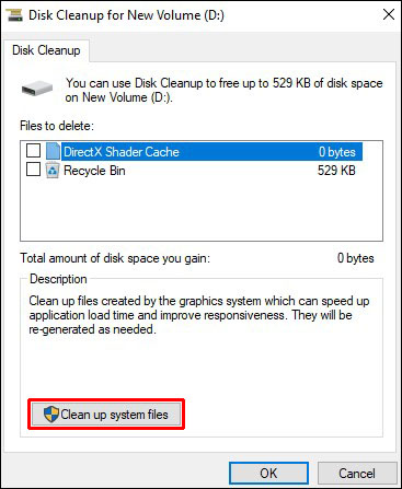 The Disk Cleanup program can also clear cache or temporary data. Follow these steps to do so: