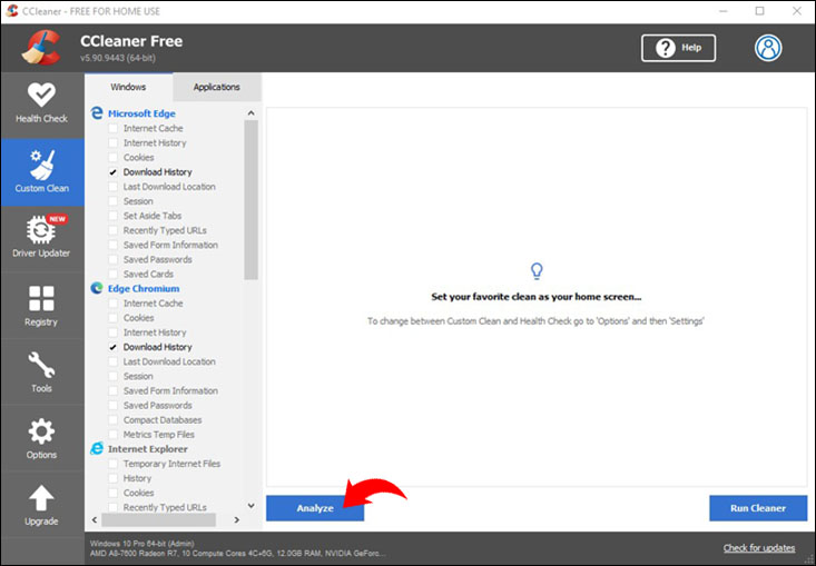 This is the simplest method for clearing your Windows 10 computer’s cache. Using software like CCleaner is as simple as clicking two buttons: