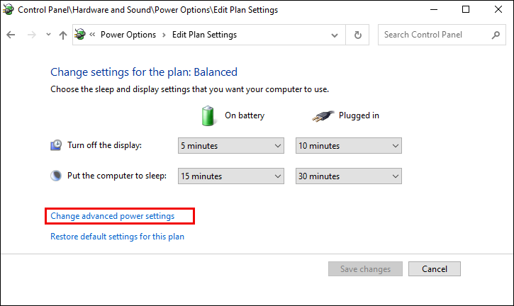- Select the ‘On battery’ and ‘Plugged in’ settings to the options that suit you.