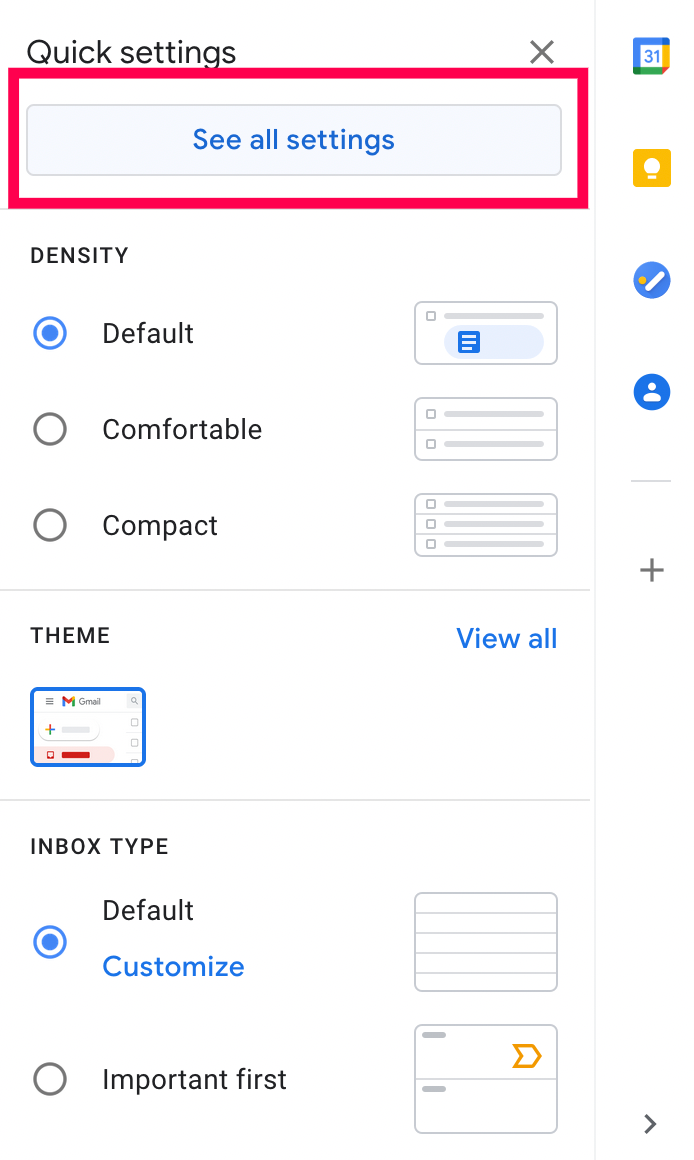 - Click See all settings at the top of the pop-out window.