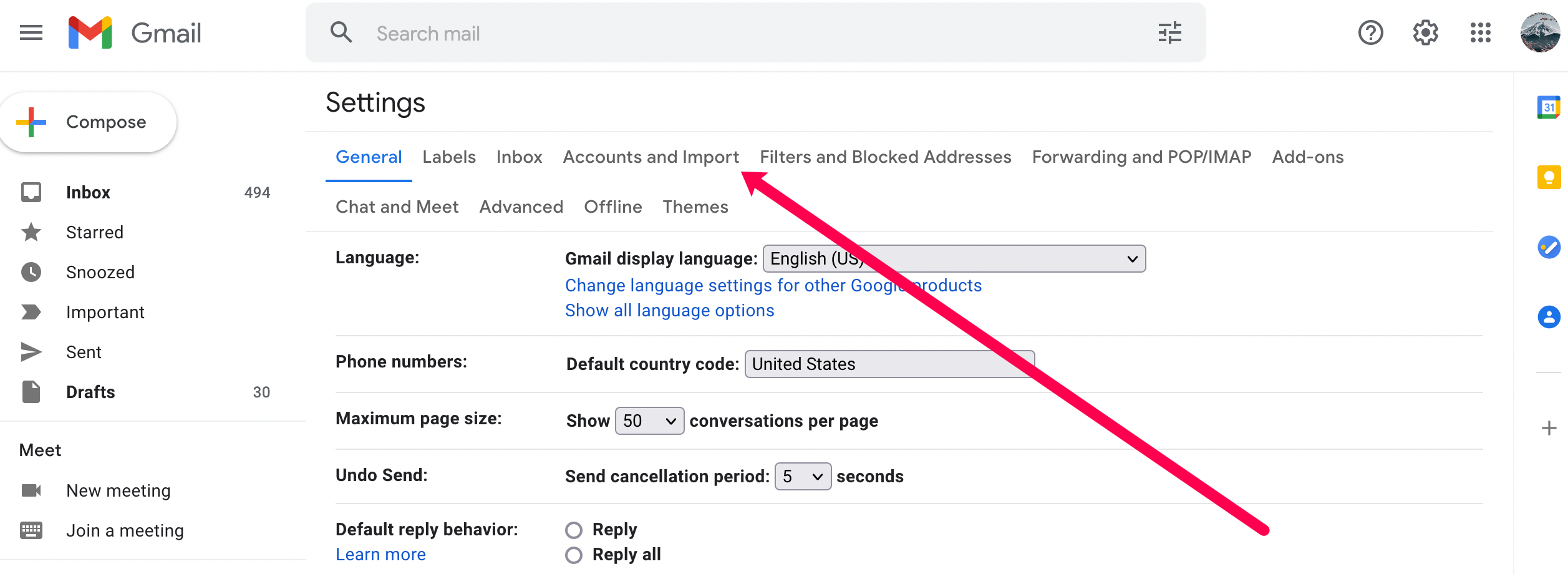 - Just go to Settings and click on the Accounts and Import tab.