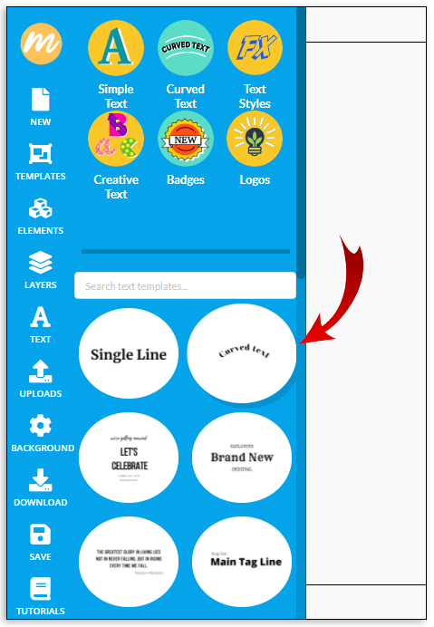- In the text menu that displays on the left side of your screen, choose “Curved text.”