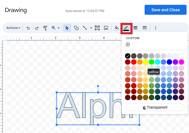 7. Click on “Save and Close” to add it to Google Docs.