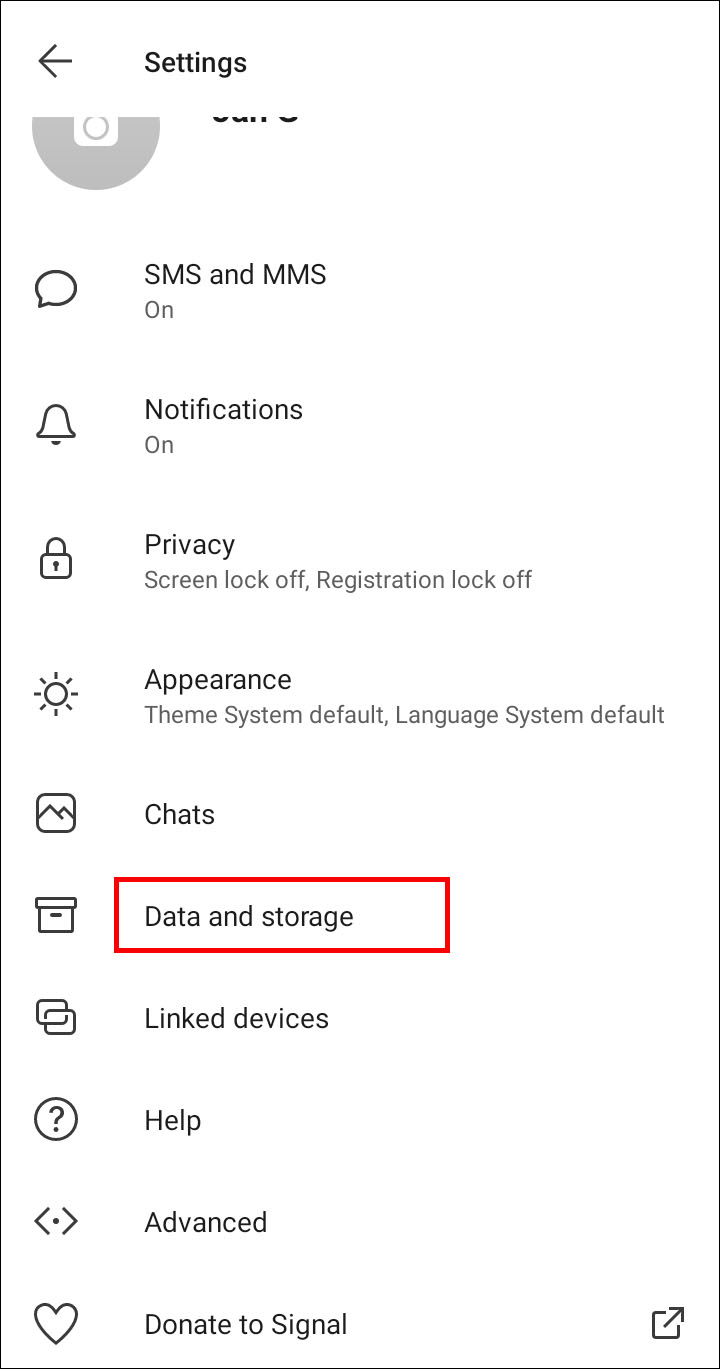 - Scroll down until you get to the “Data and Storage” section. Open it.