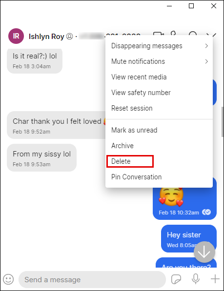 - Confirm that you want to delete that chat by pressing “Delete.”