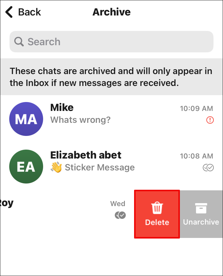 - Swipe right on that chat.