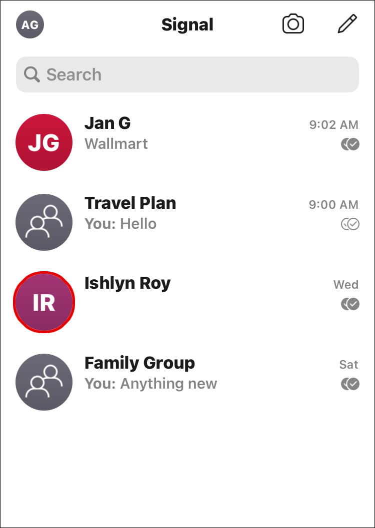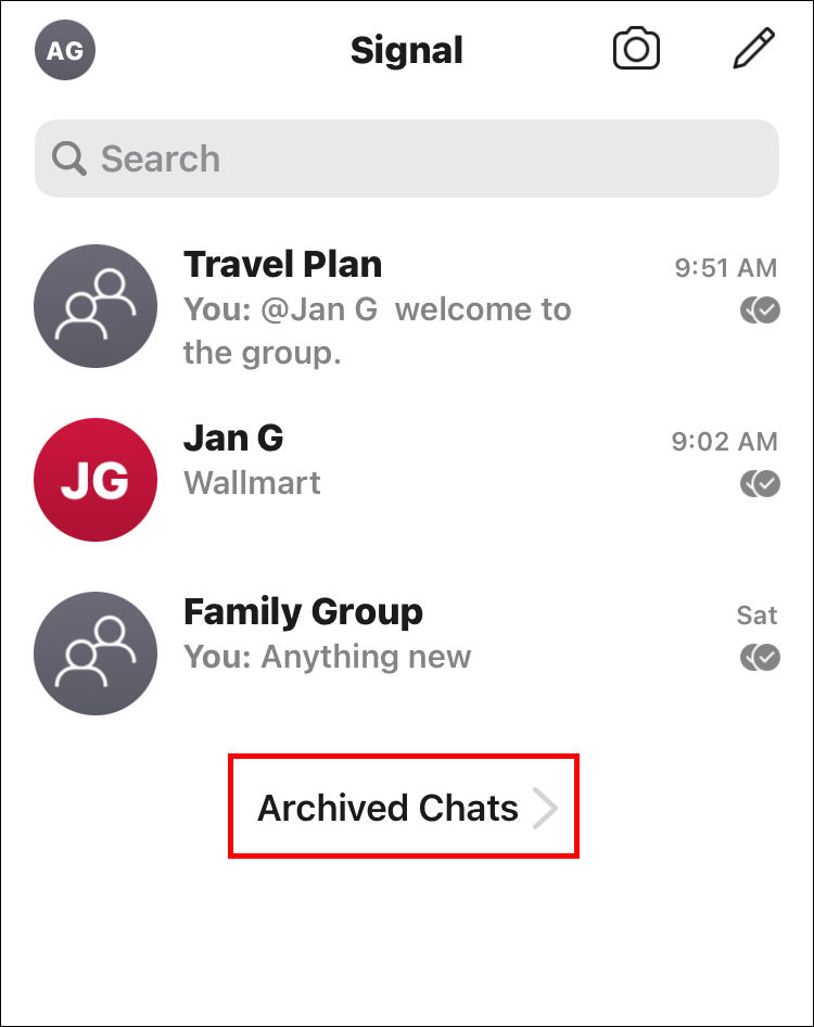 Note: This action won’t remove you from Signal groups. You can find them again by searching for them in the search box.