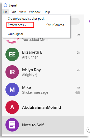 • Go to Preferences (either Signal > Preferences for Mac, or File > Preferences for Windows and Linux).