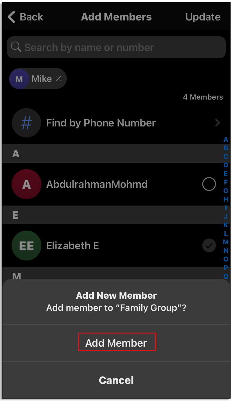 • Scroll down to the group member list.