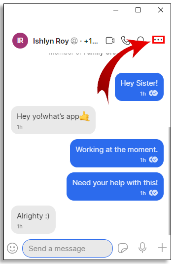 2. Click on the three horizontal dots on the upper right corner of the group window.