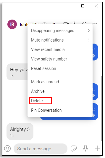 - You have now deleted a Signal chat.