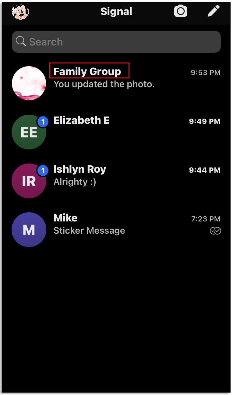- Open Signal. You can now see your chat list.