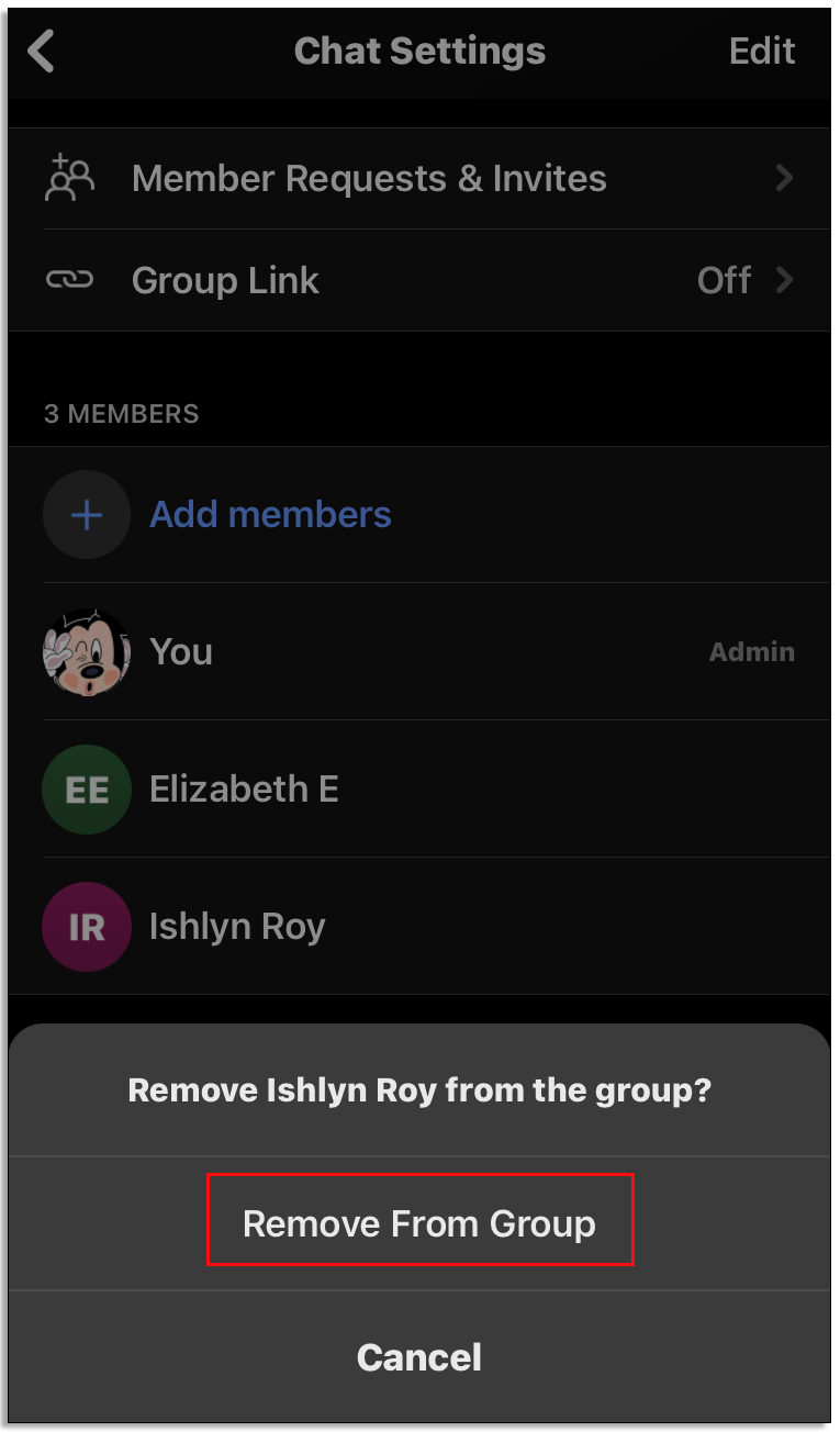 Below, you’ll find instructions on how to view group members, edit the group name or photo, view admin, and more.