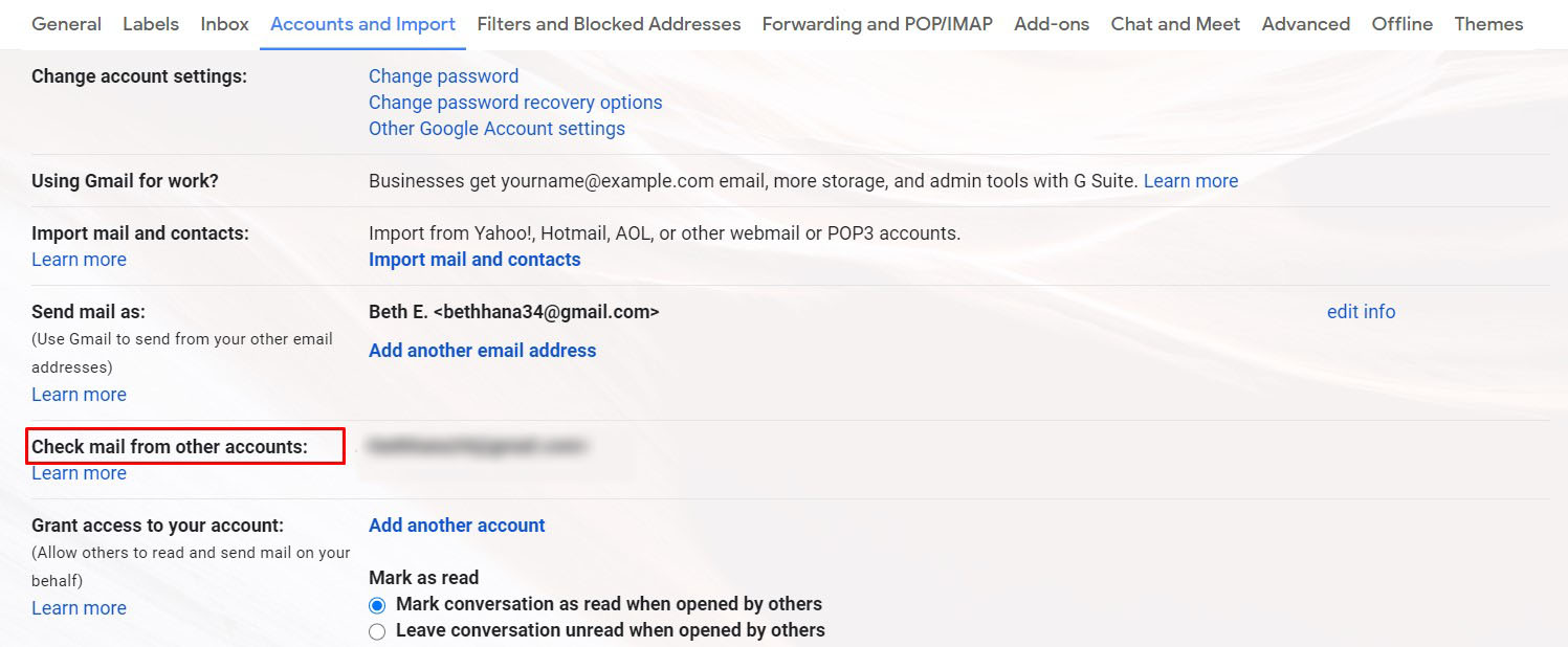 - Scroll down until you reach “Check mail from other accounts:”