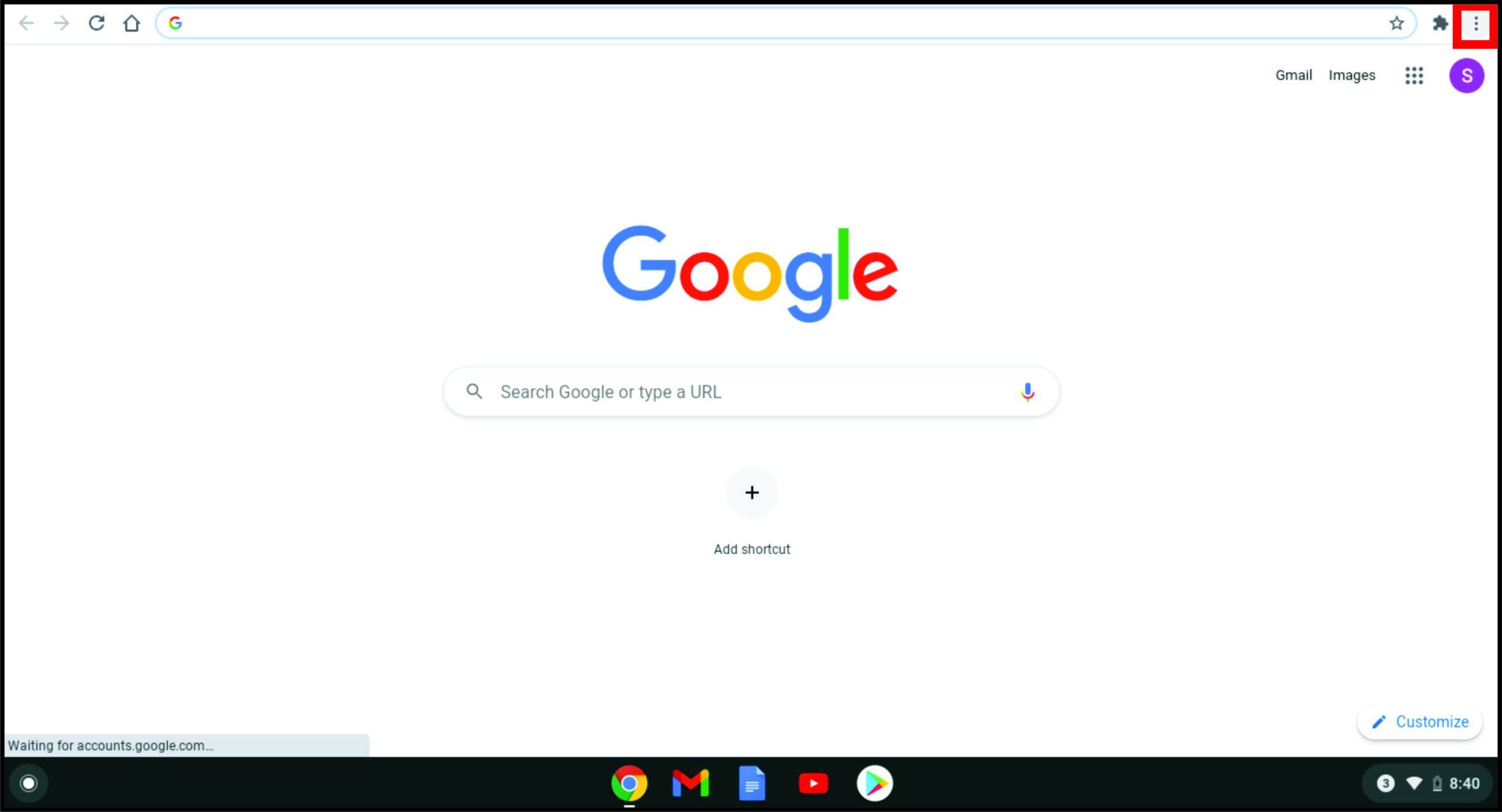 - Open Chrome on your Chromebook and click on the three-dot menu icon.