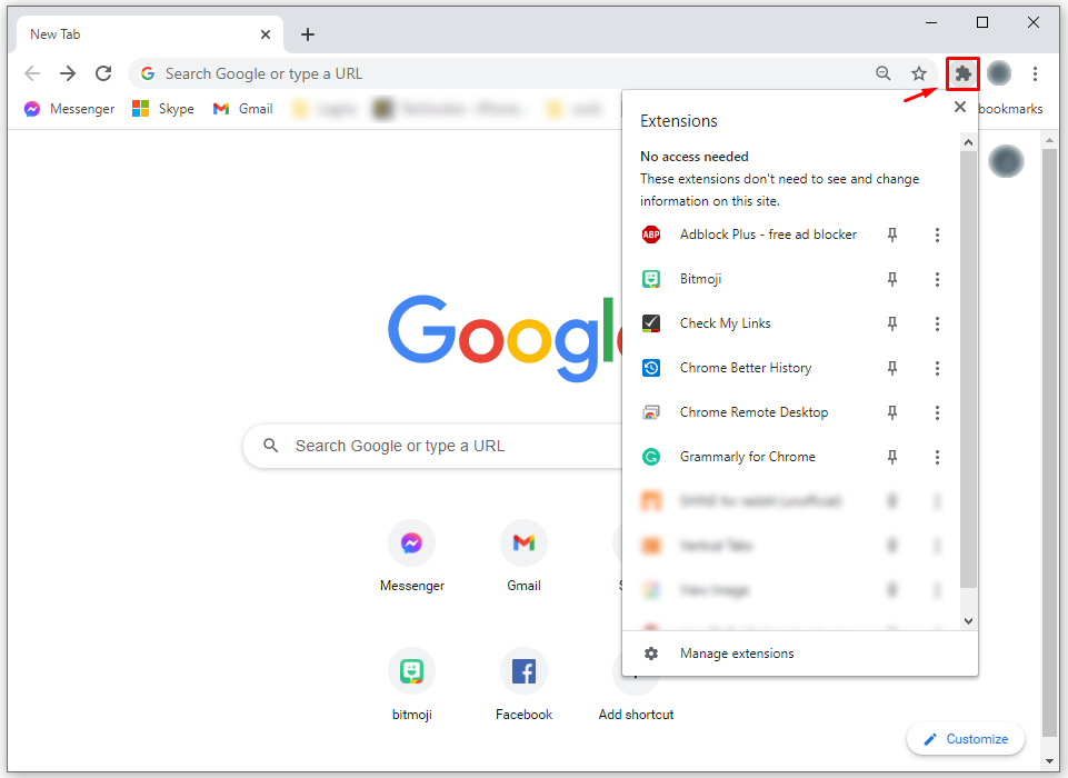 - Open Chrome and click on the extension’s icon to see the list of all extensions you’ve pinned and unpinned.
