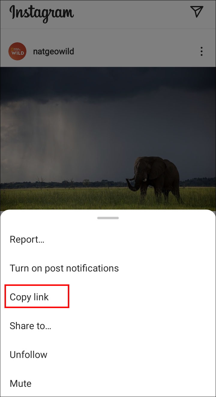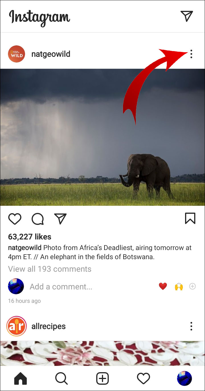 - Find the picture you want to save on Instagram and tap on the three vertical dots to open the Menu.