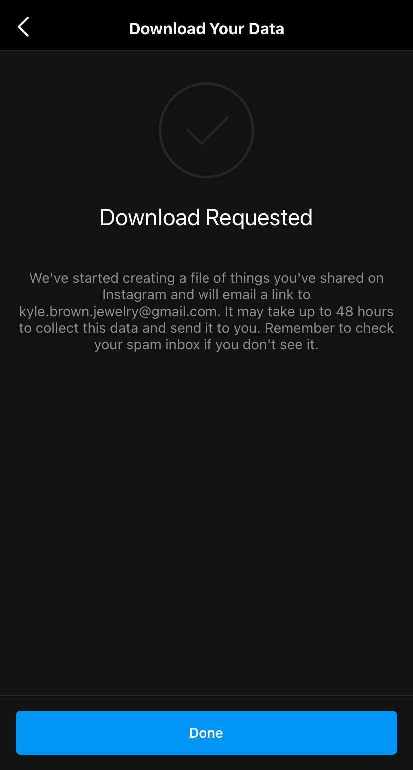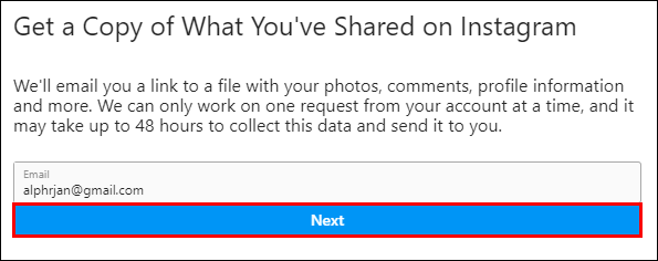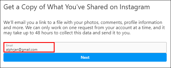 Instagram will email you once it finishes processing your request. This usually takes just a few minutes.
