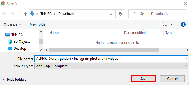 - You want to save the link as the Web Page Complete type and then hit the Save button.