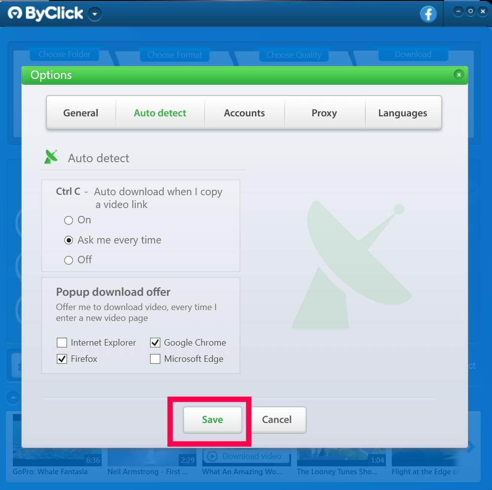 - Ensure that the web browser you’re using is checked. Then, click Save.