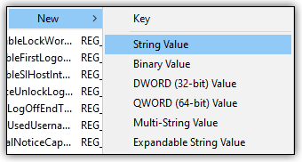 - Add the new key, AutoAdminLogon, by going to Edit > New > String Value.
