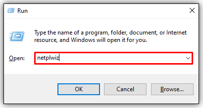 - Type “netplwiz“ into the Run window and click on the OK button.