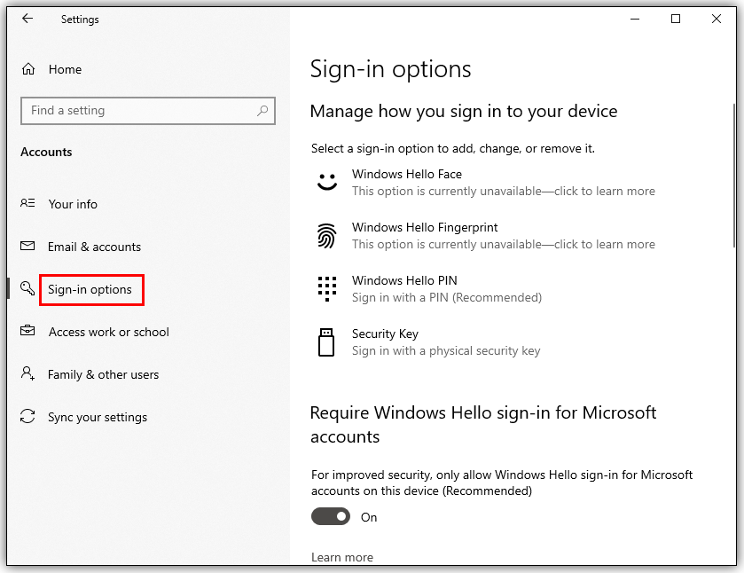 - Next, click on Sign-in options.