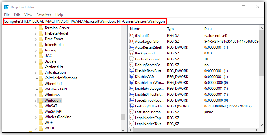 HKEY_LOCAL_MACHINE\SOFTWARE\Microsoft\Windows NT\CurrentVersion\Winlogon