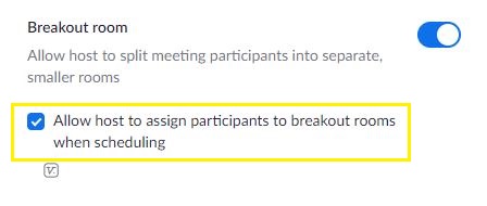 - To enable pre-scheduling for breakout rooms, click the checkbox below.