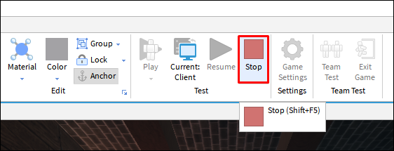 - Pause your game by clicking the “Stop” button over at the top menu. It’s a red-squared icon.