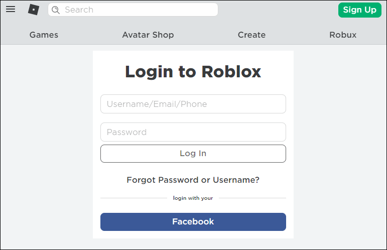 • Log into your Roblox account.