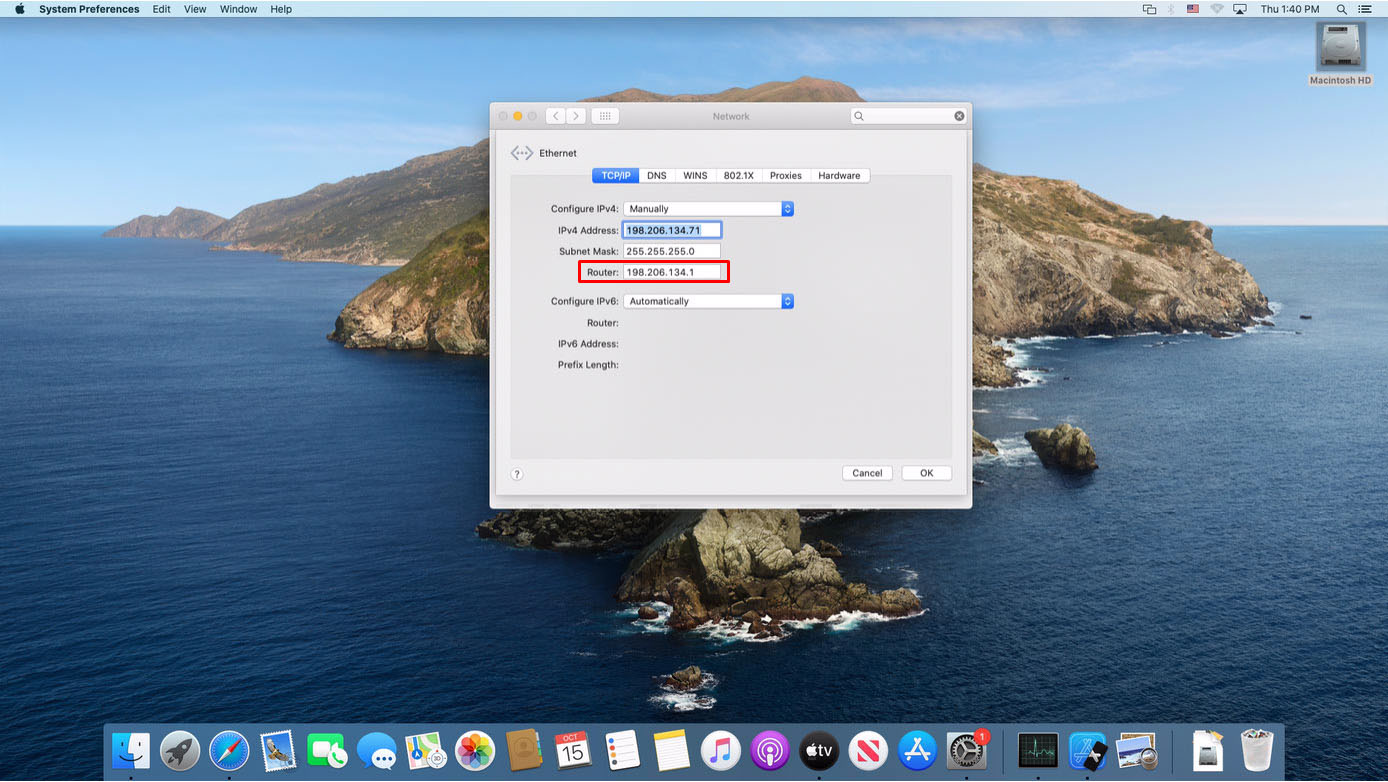 - The router’s IP is under the Default Gateway information. Use the IPv4 format of the gateway (e.g., 10.0.0.1).