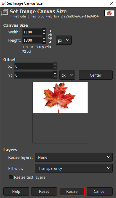 - Tap on “Resize” and change the size of the canvas to fit two images.