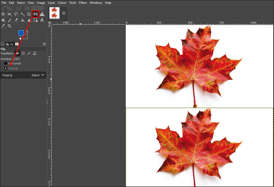 - Click on the Flip tool icon in your toolbox.