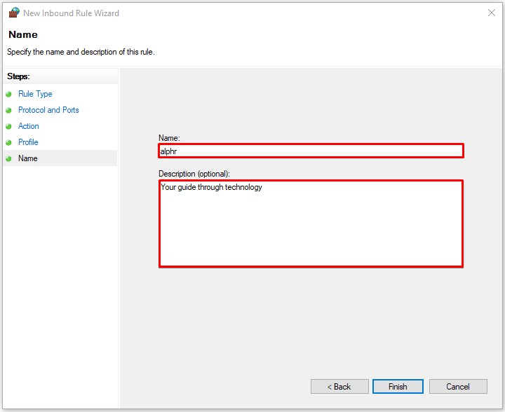- As the final step, enter the name for the new rule. You can also add a description so you know for what purpose you’ve created it.