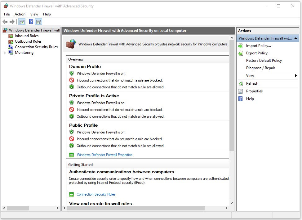 - Now the separate menu opens, titled “Windows Defender Firewall with Advanced Security.”