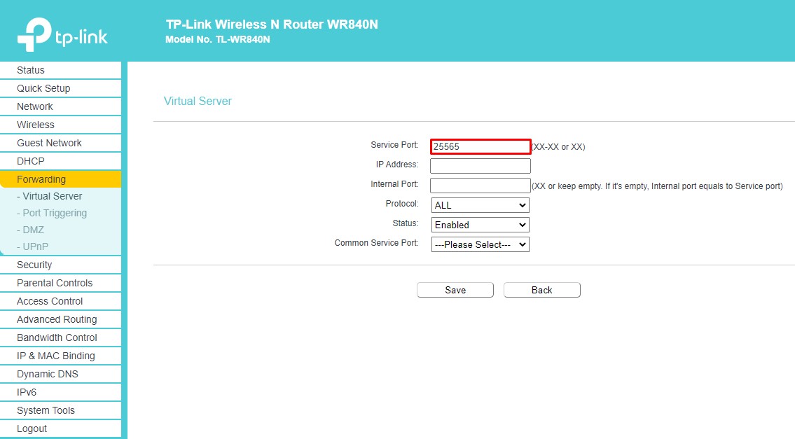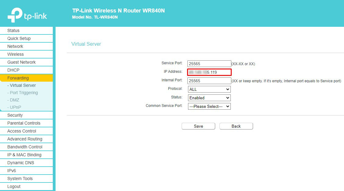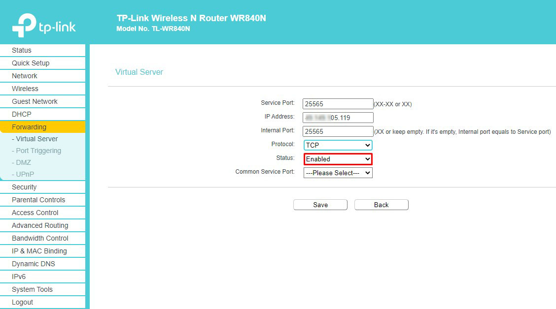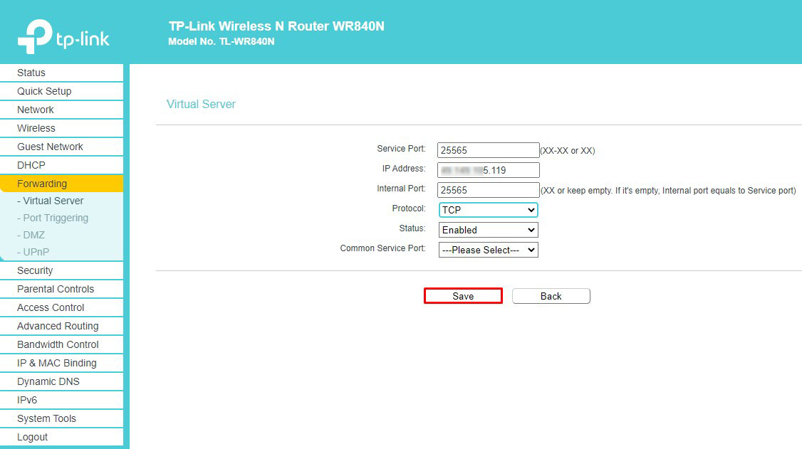 - Now click/tap the “Save” button to confirm the changes to the “Minecraft” forwarding rule you’ve just created.