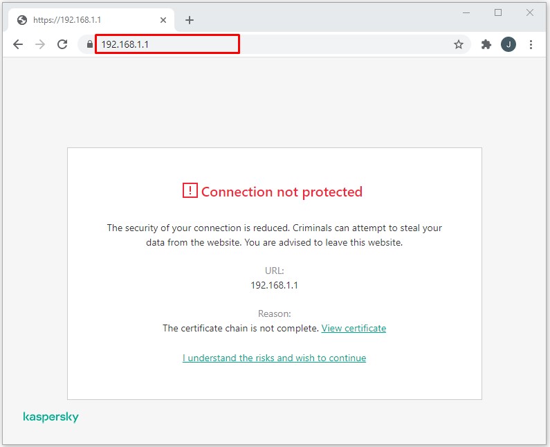 - In the address bar, type in 192.168.1.1 to open the router administration login page.