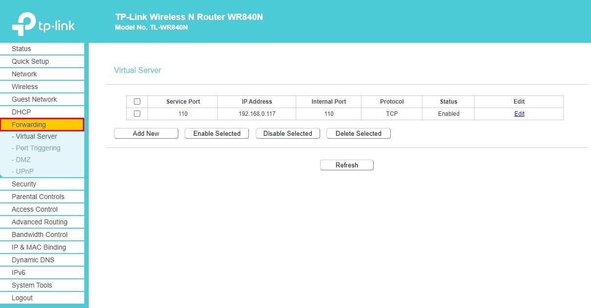 - When you open the router’s home page, locate the port forwarding option and click (or tap) it. The option you’re looking for should read “Port Forwarding” or “Forwarding.” Depending on the manufacturer of your router, you might find this option in the menu to the left or in the tabs at the top of the screen. If you don’t see it on the main page, it might be that it’s hidden in some of the menus. Try “Settings,” “Advanced Settings,” or something similar. If you still can’t find it, you might need to refer to the router’s user manual.