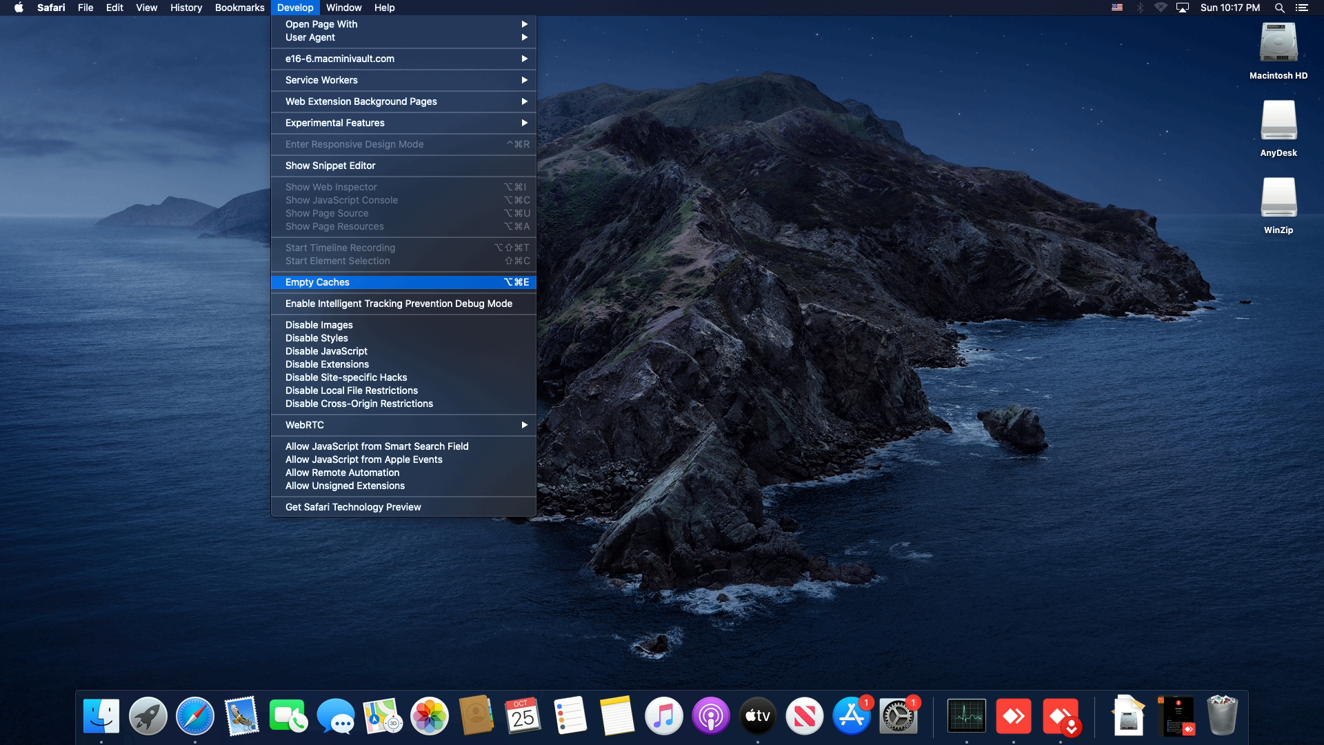 - Click the Develop button in the menu bar and choose Empty Caches.