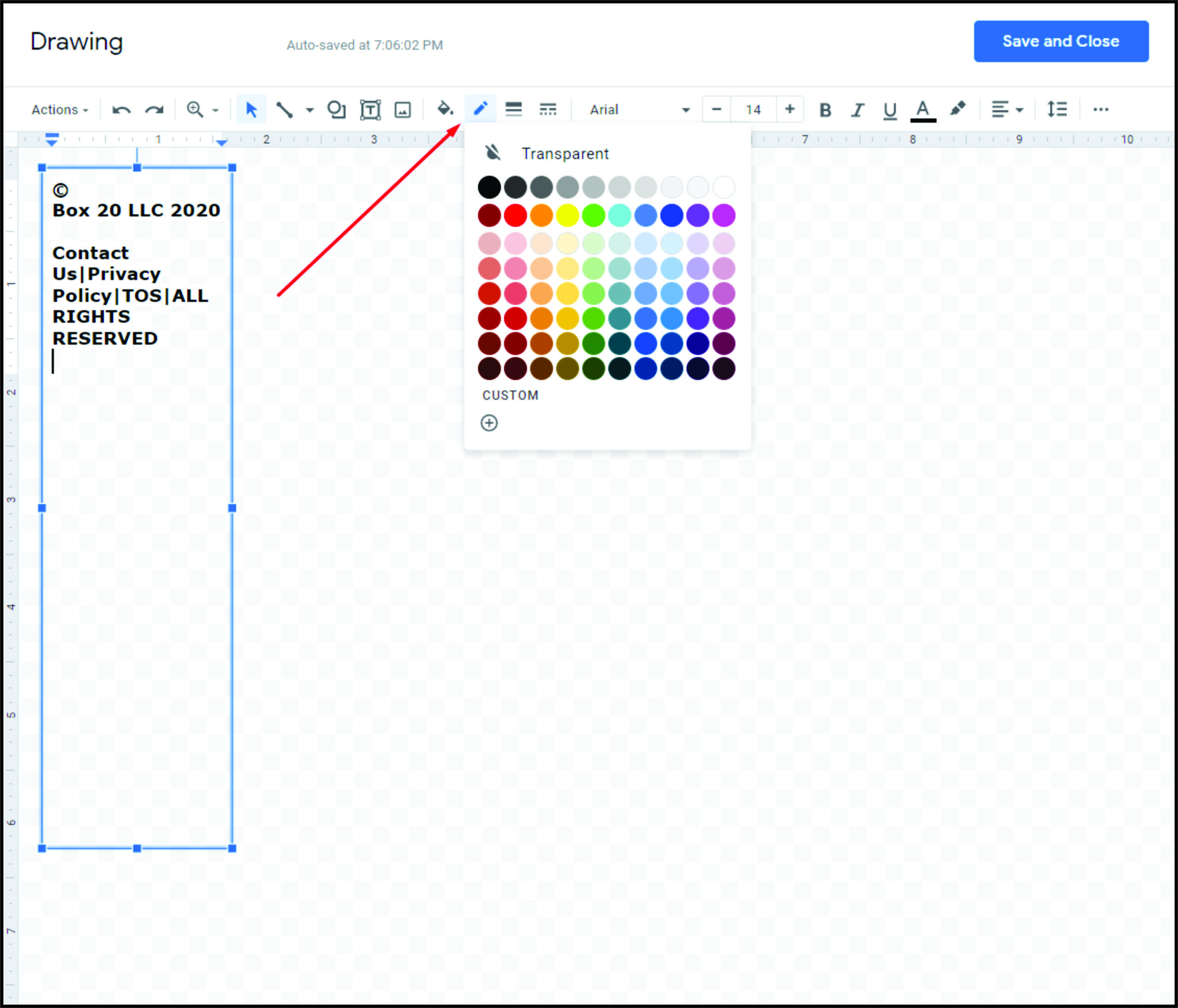 - Draw the text box on the window. It doesn’t matter how big it is, this can be adjusted later.