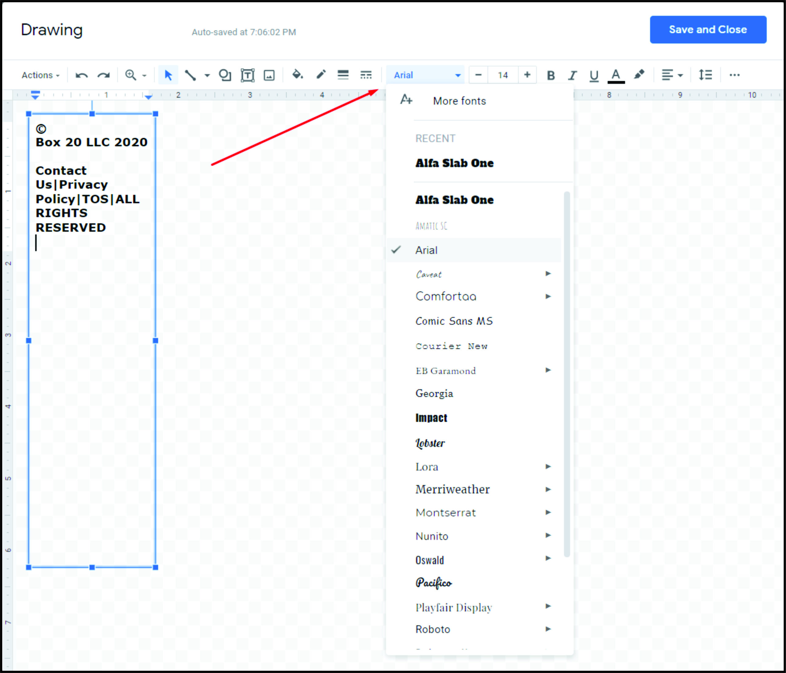 - You can adjust the font by selecting the entire text and choosing the appropriate font in the top menu.