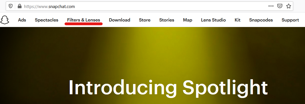 - Open Snapchat on your browser and select Filters & Lenses.