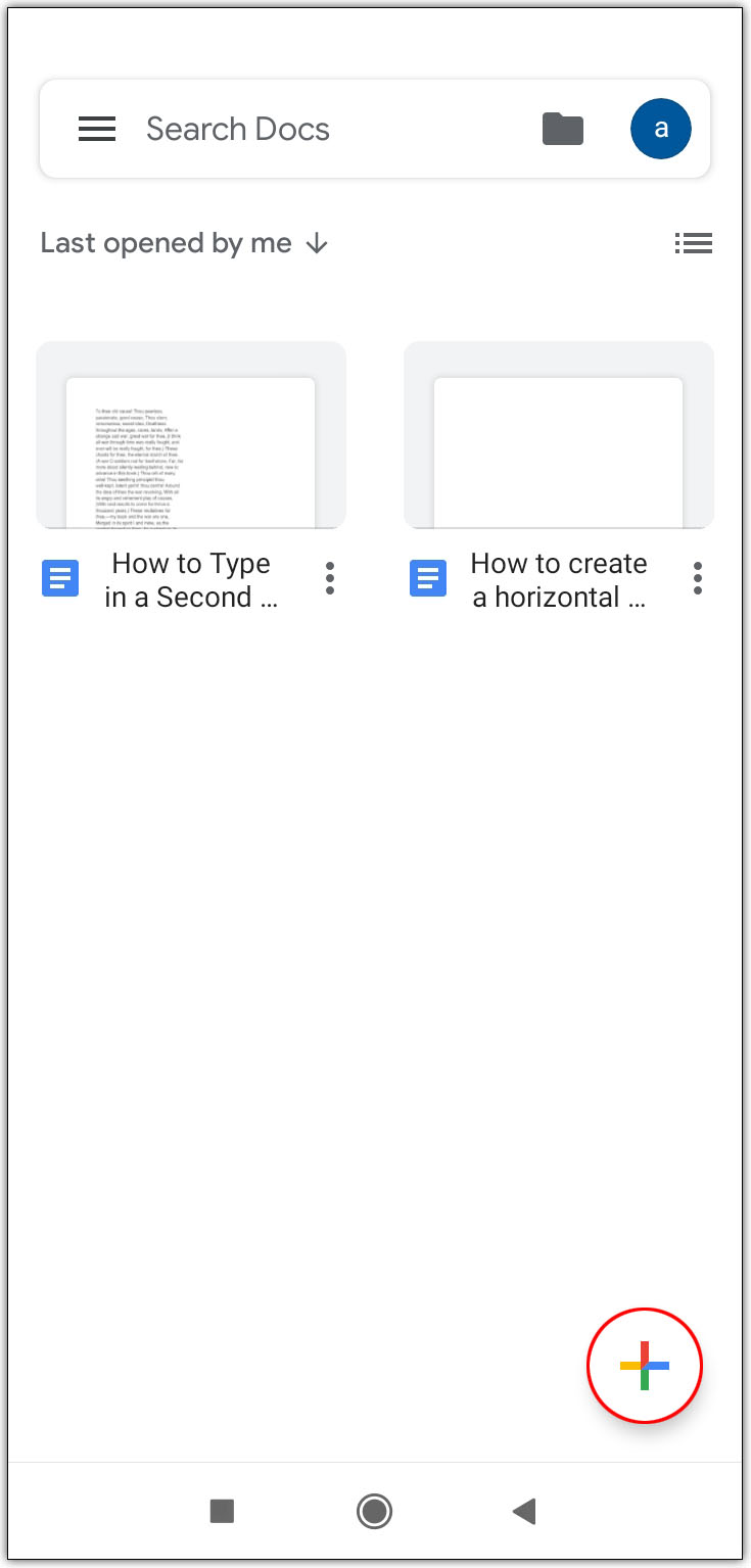 - Open the Google Docs mobile app, then tap on the + in the lower right-hand corner of the screen.