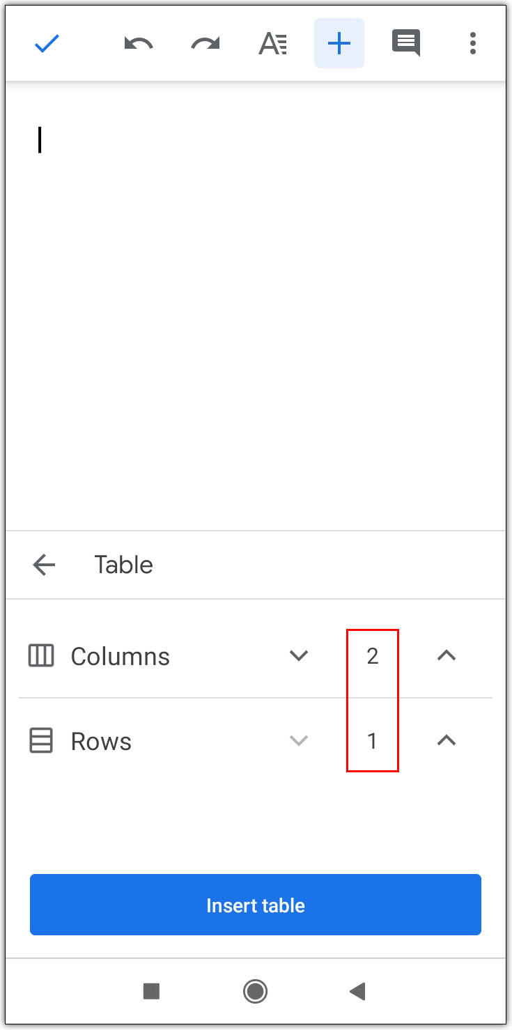 - Tap on Insert. This is the + symbol in the top-right menu.