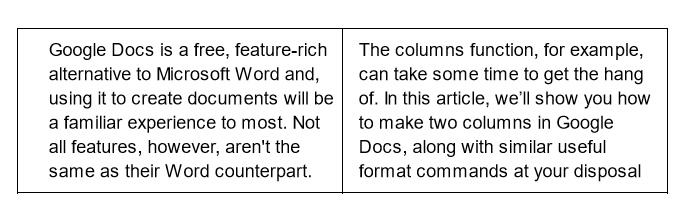 Google Docs is a free, feature-rich alternative to Microsoft Word and, using it to create documents will be a familiar experience to most. Not all features, however, aren’t the same as their Word counterpart. The columns function, for example, can take some time to get the hang of.