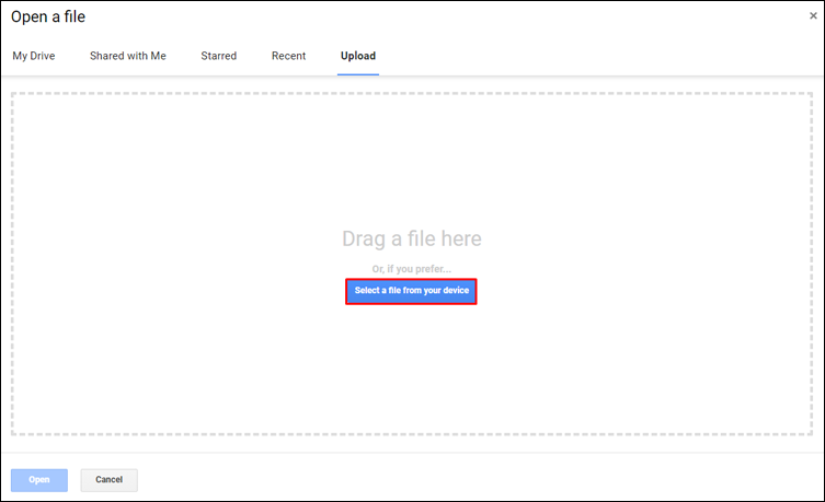 - Now you can choose to open the file from Google Drive or your device’s storage.