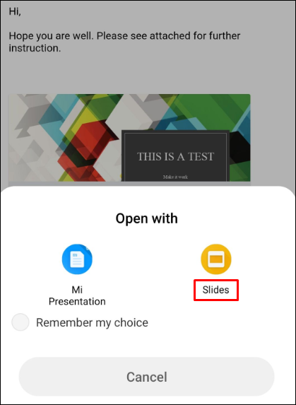 For anyone who uses the Gmail app, you can open a PowerPoint with the Slides app in just a few steps.